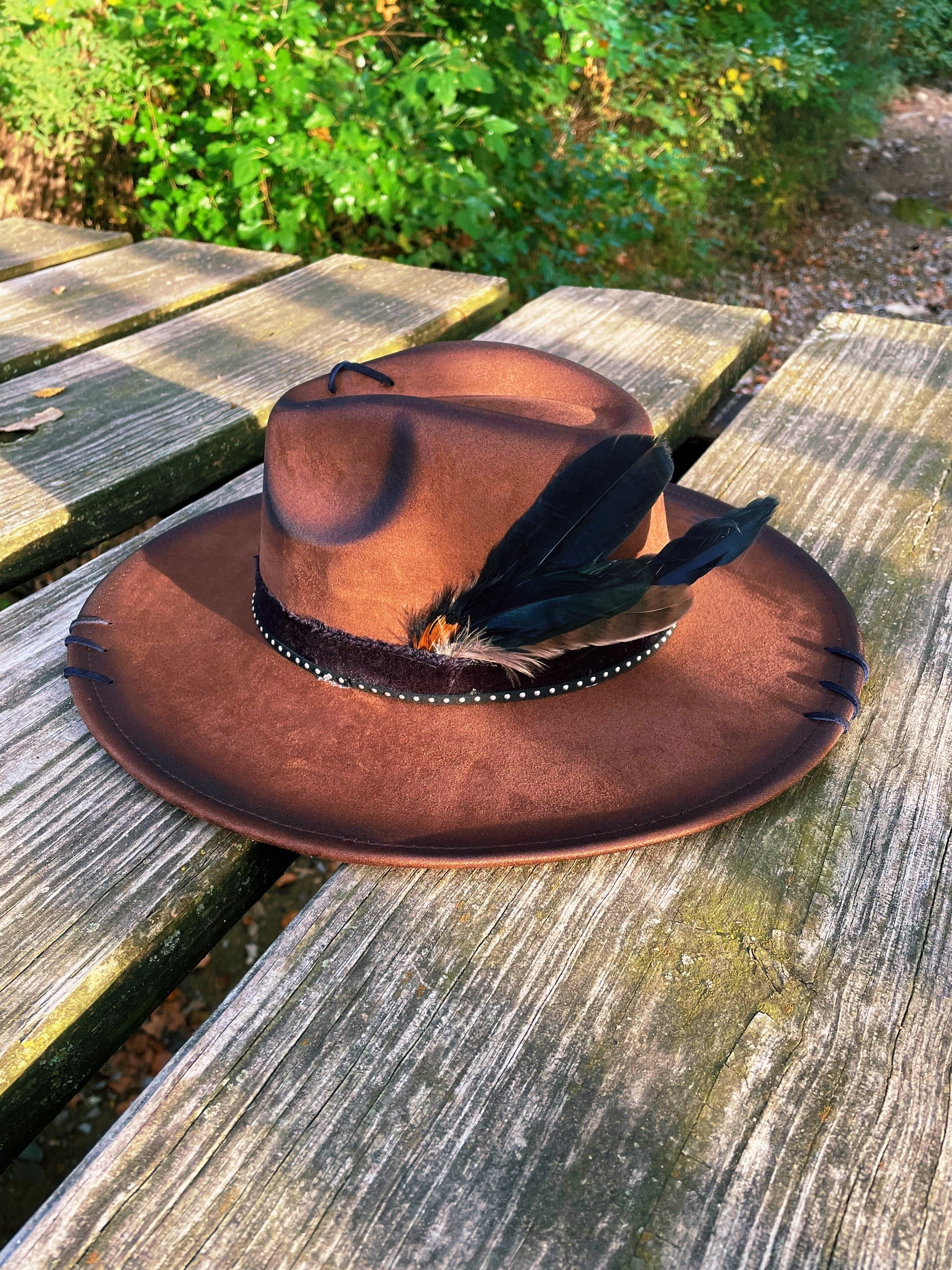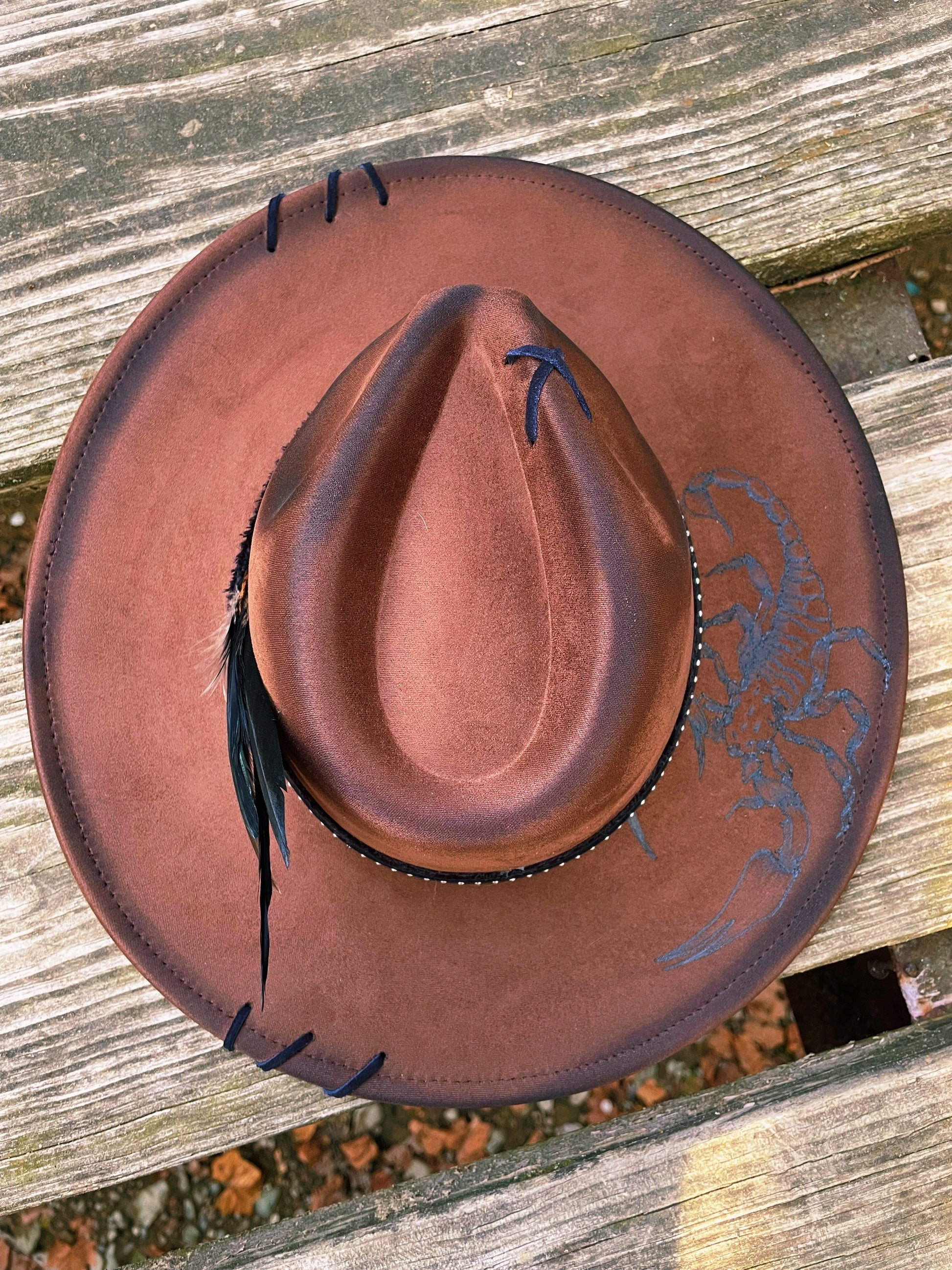 Artwork is burned entirely by hand. All hats are one size and come with an adjustable cinch on the inside to adjust smaller. 23”-21”.
