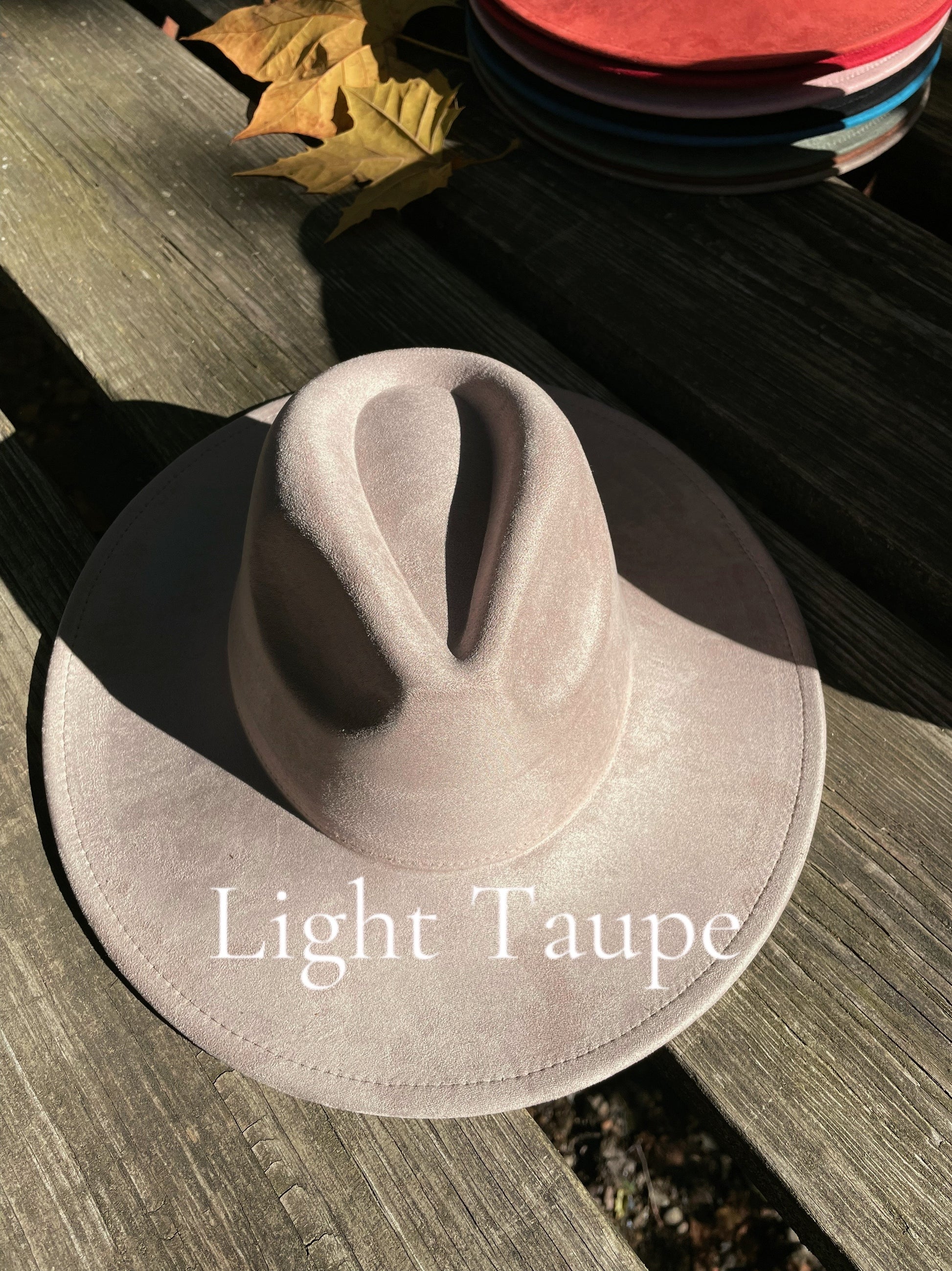 This is a list of color choices for wide brim hats only. Some colors may be out of stock but can be ordered and arrive to me within a week. I almost always have tans, blacks and brown available. All hats are size adjustable by tightening the cinch inside the crown. 23”-21”.